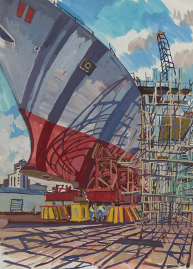 Right: Type 26 by Lachlan Goudie, gouache on paper, 68x51cm.